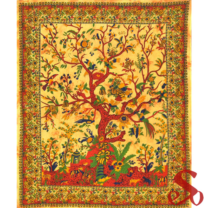 quantité de Tenture Indienne Arbre de vie rouge & jaune