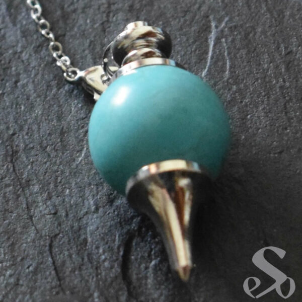 Pendule Sephoroton en Turquénite, chaînette en métal argenté 18cm.